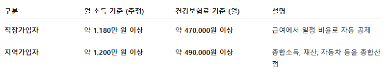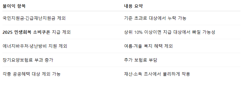 단순히 ‘소득이 많다’는 이유가 아닌, 건강보험료가 높다는 이유로 제외될 수 있습니다.
